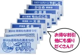 木札を購入された方は協賛先の店でご利用の際クーポンチケットを提出して頂きますと割引やサービスを受けることができます。