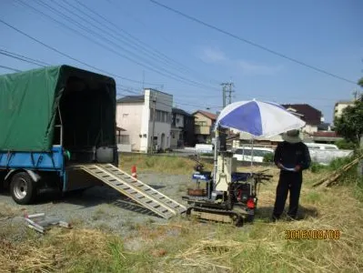 そんな中、福岡県大牟田市N様邸の地盤調査でした。やはり暑いのかパラソル付きでw♪