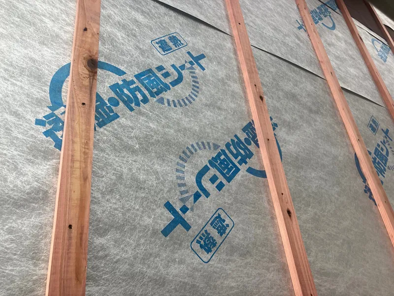 外部には遮熱機能のある透湿・防風シートを施工しますので、