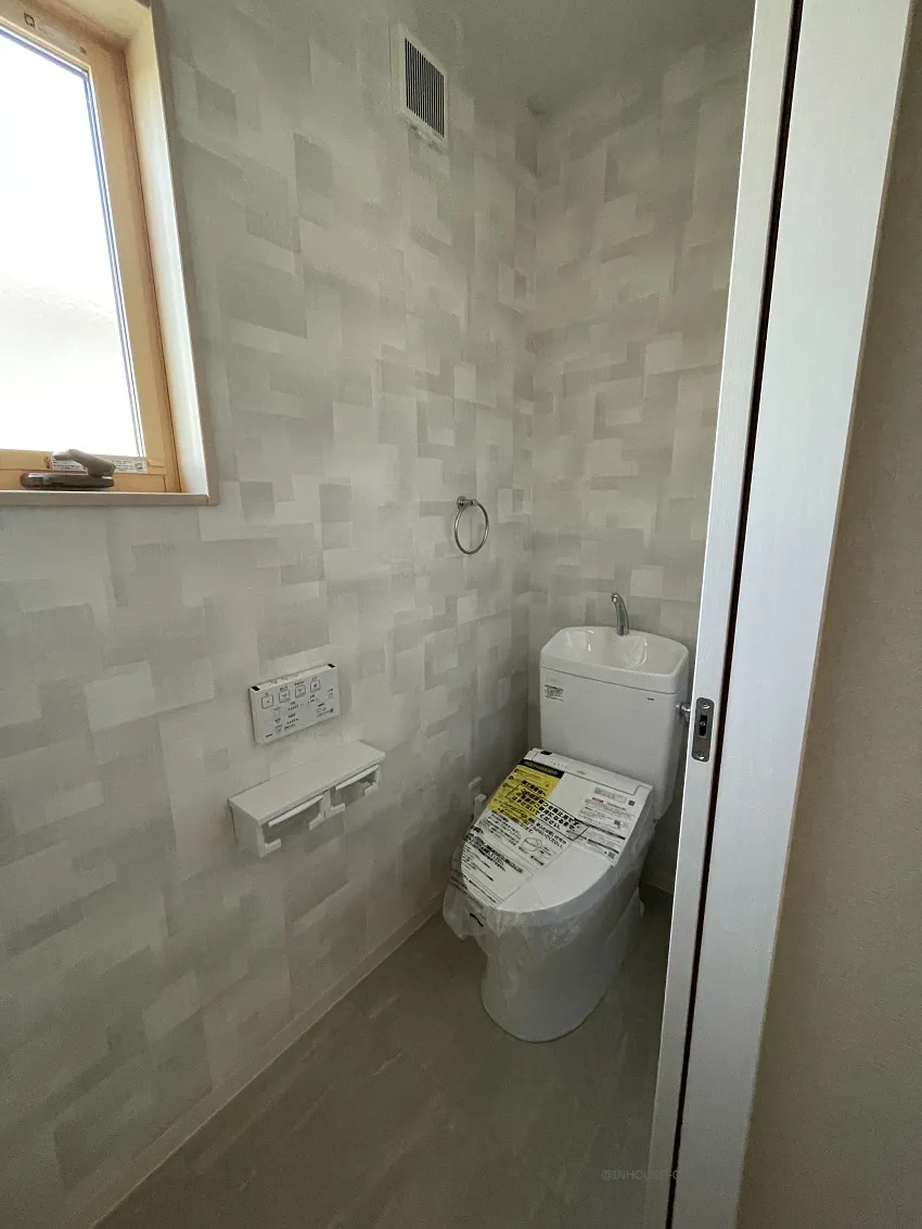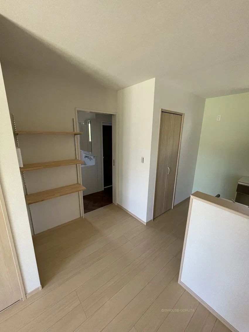 玄関付近を明るい色で貼り分けし、重たい印象が和らぎました。