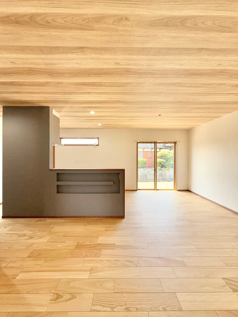 木目調のインテリアで優しい雰囲気のインテリア。すべての部屋に直接アプローチできる間取り